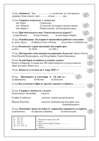 12.зад. Допишете: Хан…………….. e създателят на българската