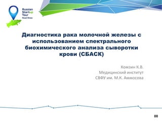 Документ описывает диагностику рака молочной железы с использованием спектрального биохимического анализа сыворотки крови, подчеркивая недостатки существующих методов и предлагая преимущества нового подхода. Метод отличается низким уровнем инвазивности, высокой чувствительностью и низкой себестоимостью, что может значительно повысить эффективность лечения и снизить уровень смертности. В документе также указаны необходимые шаги для реализации проекта и улучшения теоретической базы метода.