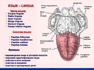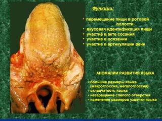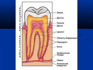 Документ представляет собой подробный текст о анатомии и физиологии стоматологических структур, включая строение зубов, их классификацию и функциональные аспекты. В нем обсуждаются различные виды анатомических, физиологических и патологических состояний стоматологических органов, такие как прикусы и аномалии развития зубов. Также рассматриваются операции, связанные с врожденными пороками, и важные функции пульпы зуба.