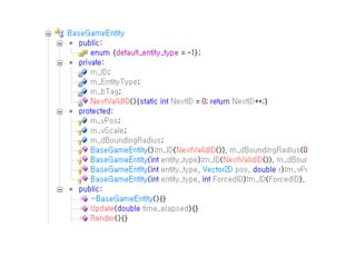 #32 운반기를 목표 운반기로부터 명시된 오프셋 만큼 떨어진 위치를 유지하기 위해 요구되는 조종힘을 계산 대형 / 진영을 생성하는 데 특히 유용 오프셋은 항상 ‘ 리더 ’ 공간에서 정의되기 때문에 조종힘 계산전에 우선적으로 해야하는 일은 , 우선적으로 세계 공간에서 오프셋들의 위치를 결정하는 것이다 . 이후부터는 , 함수는 추격하기와 유사하게 진행된다 .