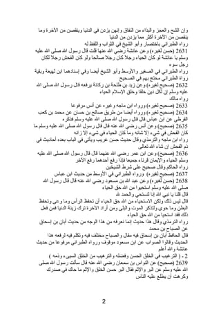 يتناول المستند الترغيب في الحياء وفضله والترهيب من الفحش، ويستشهد بعدة أحاديث نبوية تشير إلى أن الحياء من الإيمان ويدل على صلاح الإنسان. كما يسلط الضوء على أهمية الخلق الحسن كسبيل لنيل محبة الله والقرب منه في الآخرة، ويحذر من الفحش والتفحش. يُشدد أيضًا على قيمة الرفق والحلم كجزء من حسن الخلق.