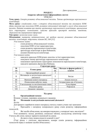 Мета уроку: ознайомити учнів з історією обчислювальної техніки та еволюцією ЕОМ.