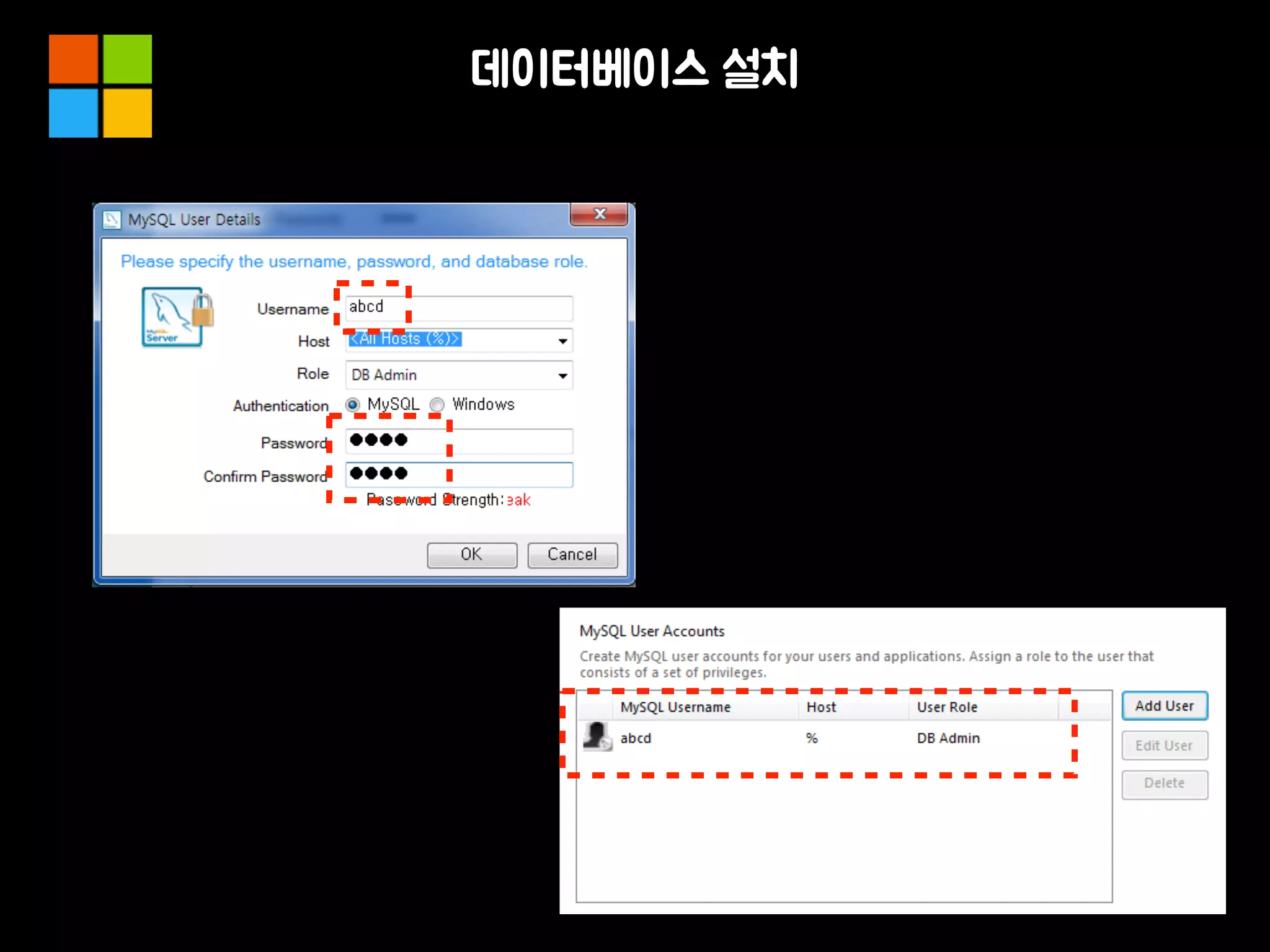 mysqlCREATE USER 'abcd'@'127.0.0.1' IDENTIFIED BY '1234';