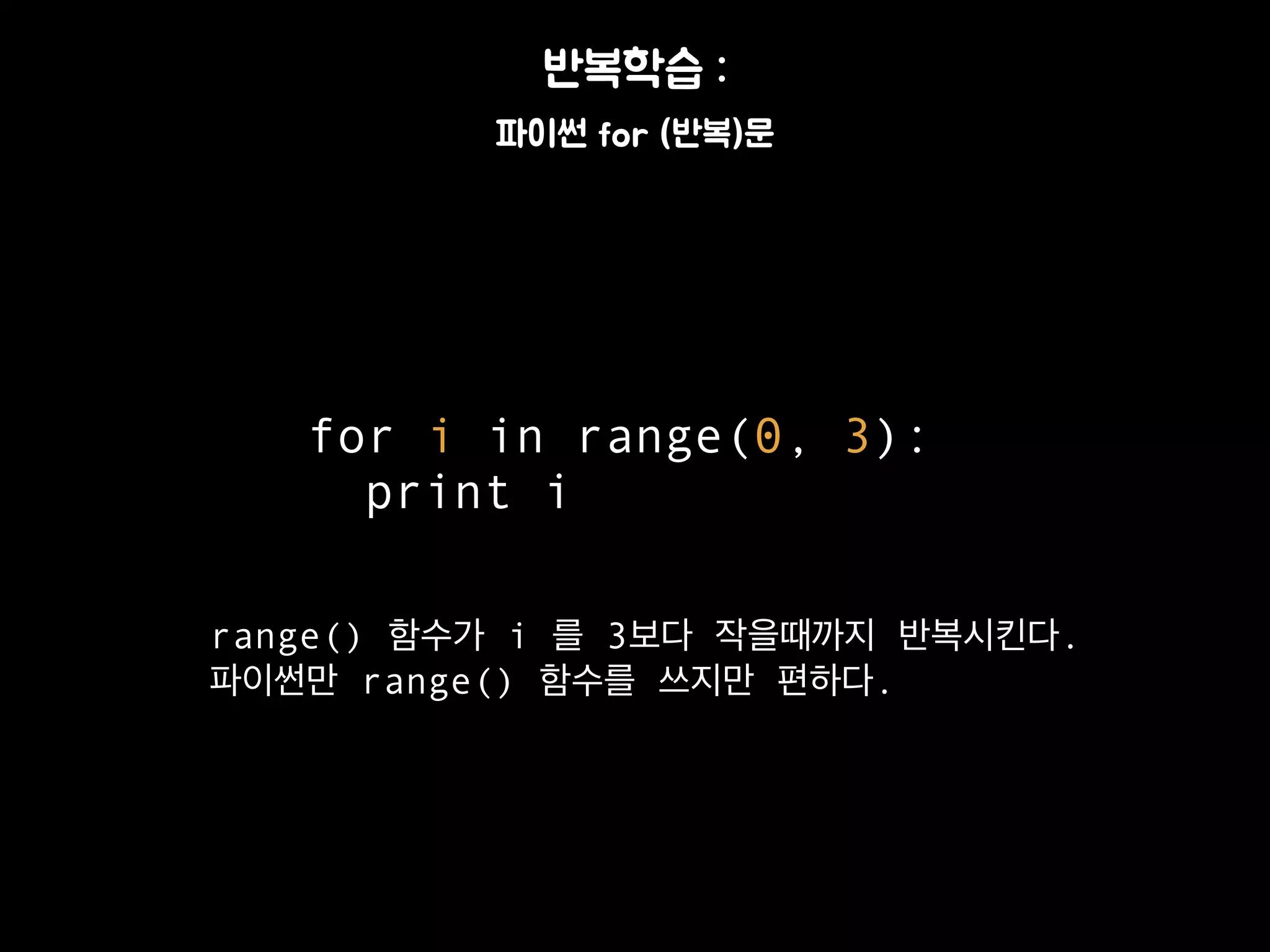 range() 함수가 i 를 3보다 작을때까지 반복시킨다.