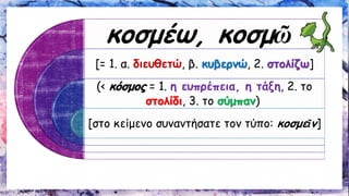 Λεξιλογικός Πίνακας "κοσμώ". 3η ενότητα Αρχαίων Β΄ Γυμνασίου