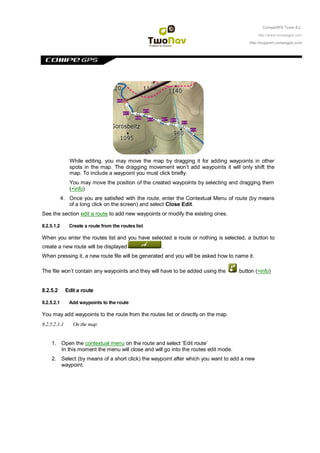 This document provides instructions for creating and editing routes in CompeGPS software. It describes how to: