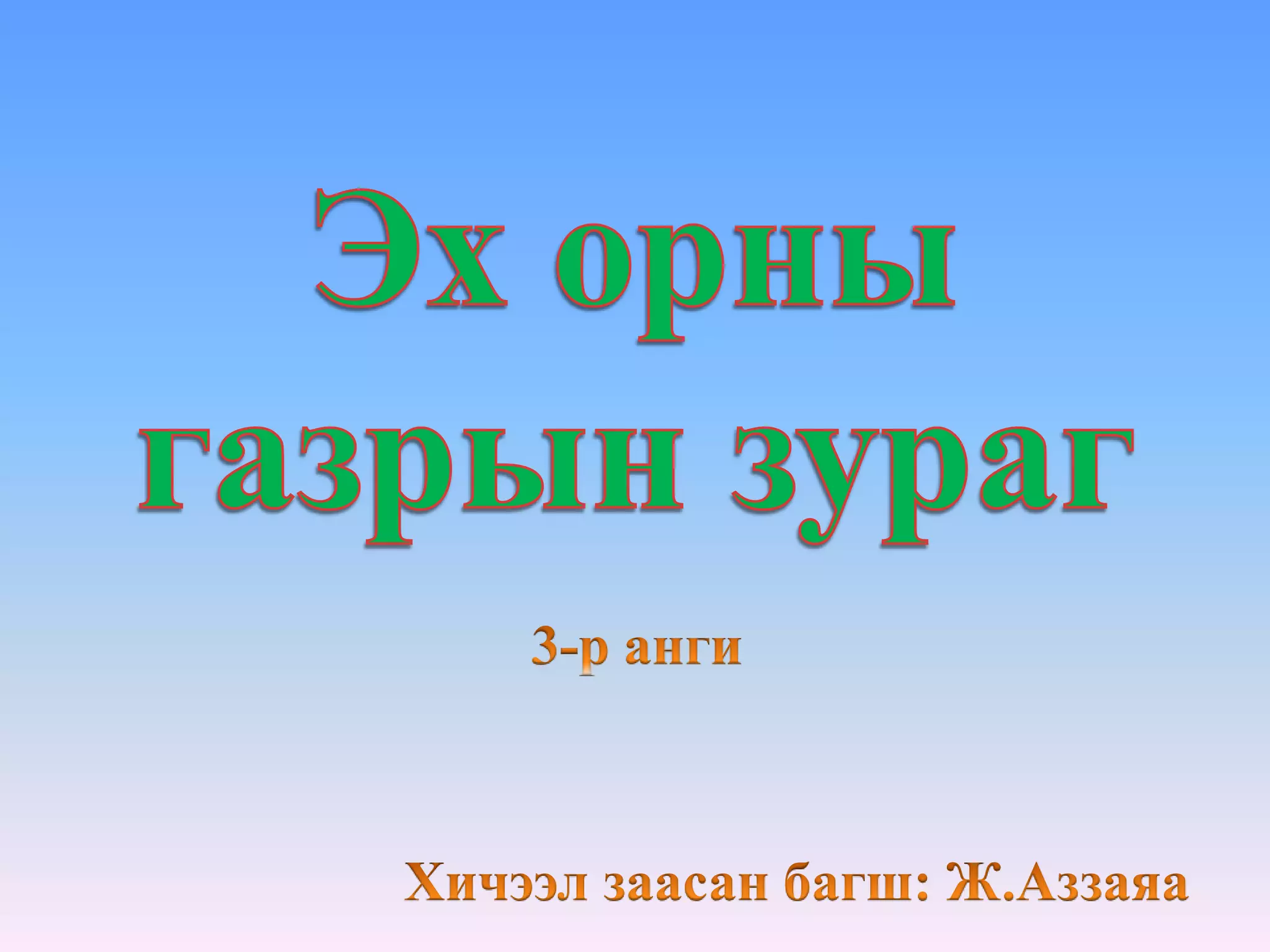 Архангай аймаг Эрдэнэбулган сум IV сургуулийн багш Ж.Аззаяа "Хүн орчин"-ны хичээл "Эх орны газрын зураг"