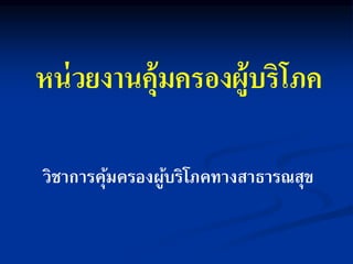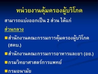 หน่วยงานคุ้มครองผู้บริโภค วิชาการคุ้มครองผู้บริโภคทางสาธารณสุข