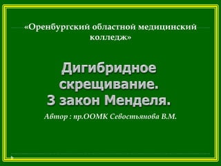 Документ описывает принципы дигибридного скрещивания, исследуемые Грегором Менделем, на примере гороха и других растений. Он объясняет, как происходит наследование двух пар альтернативных признаков и формулирует третий закон Менделя о независимом комбинировании генов. Также документ содержит примеры решения задач, связанных с вероятностью генотипов и фенотипов при скрещивании организмов.