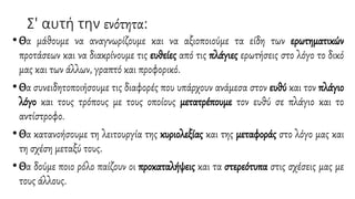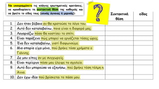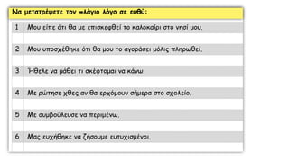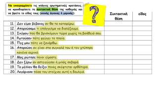 προτάσεων και να διακρίνουμε τις ευθείες από τις πλάγιες ερωτήσεις στο λόγο το δικό