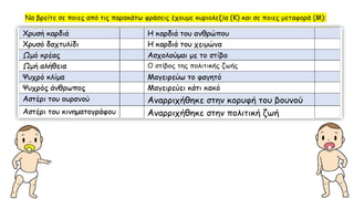 Προσπαθήστε να αντικαταστήσετε γραπτώς τις μεταφορικέςεκφράσειςτου