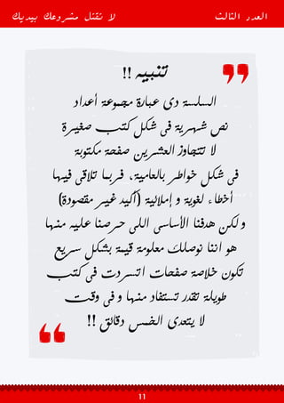 تتناول الوثيقة أهمية التخطيط الجيد للمشاريع وضرورة وجود خطة تسويقية مدروسة لزيادة فرص النجاح وتقليل مخاطر الفشل. تشير الدراسات إلى أن معظم المشاريع تواجه تحديات كبيرة في السنوات الأولى، ويعتمد استمرارها على كيفية إدارة هذه التحديات وتنفيذ الخطط بشكل فعال. كما تسلط الوثيقة الضوء على أهمية فهم احتياجات السوق والتكيف مع المتغيرات لتحقيق النجاح المستدام.
