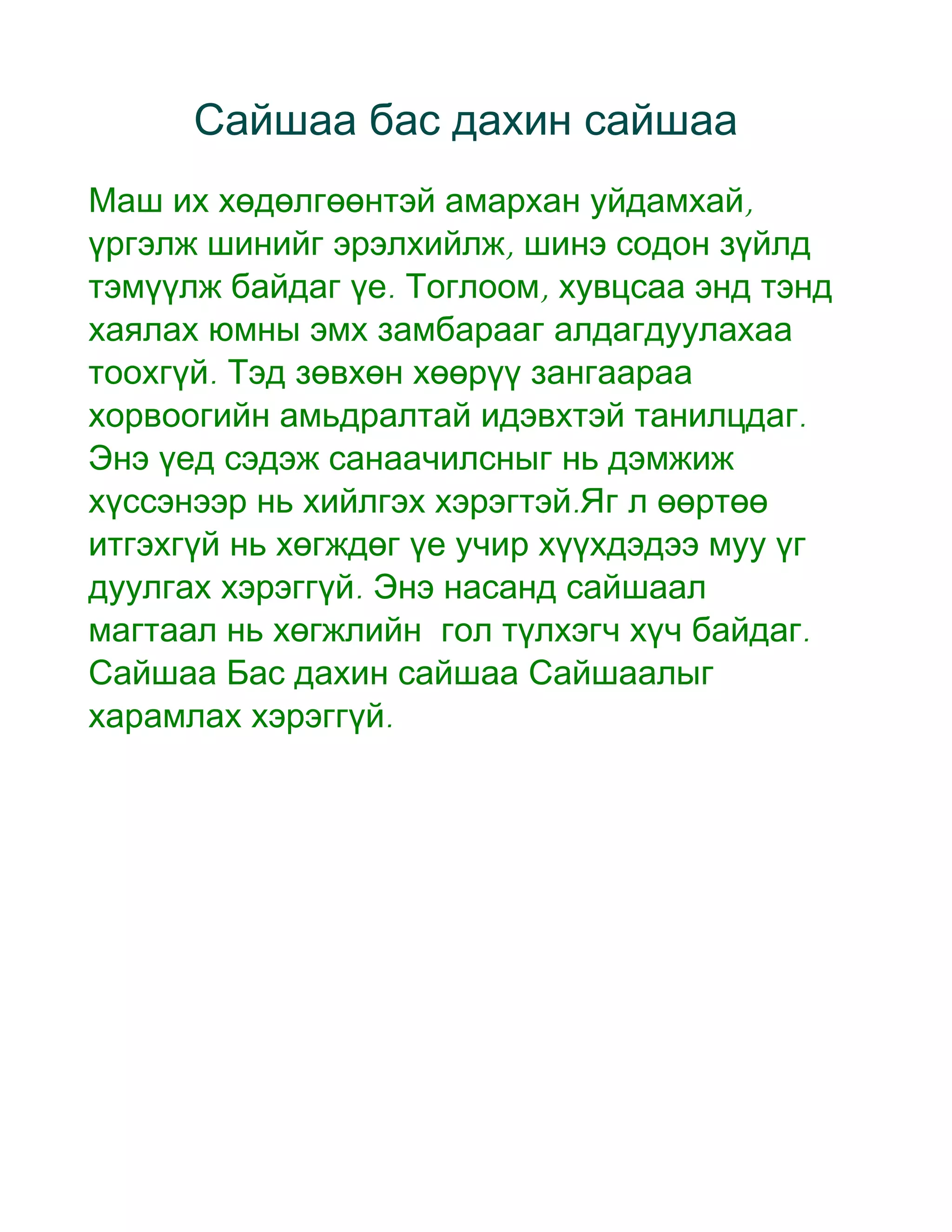 Сайшаа Бас дахин сайшаа Сайшаалыг
