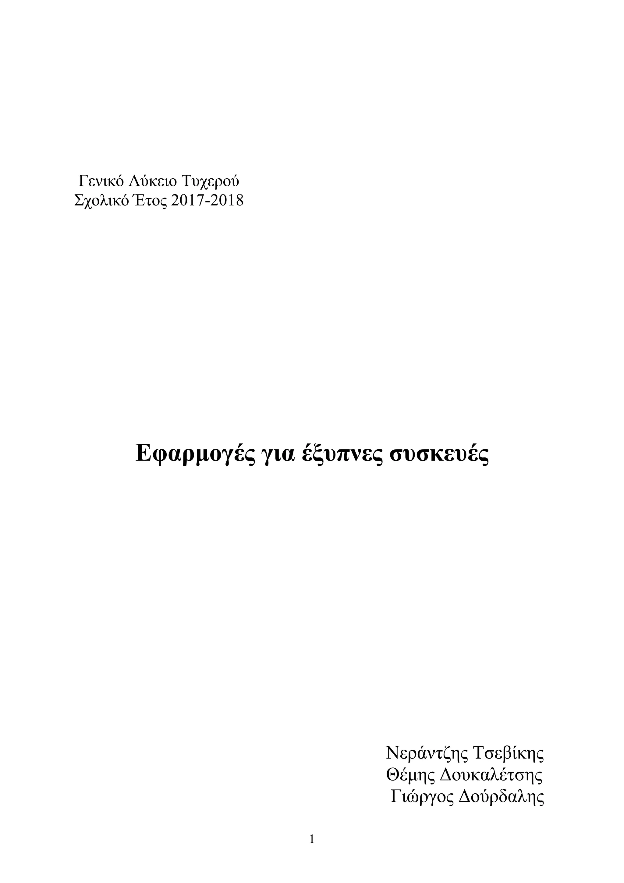 Ο τίτλος είναι ‘ Εφαρμογές για έξυπνες συσκευές , και σχετίζεται με τα μαθήματα ΄,.