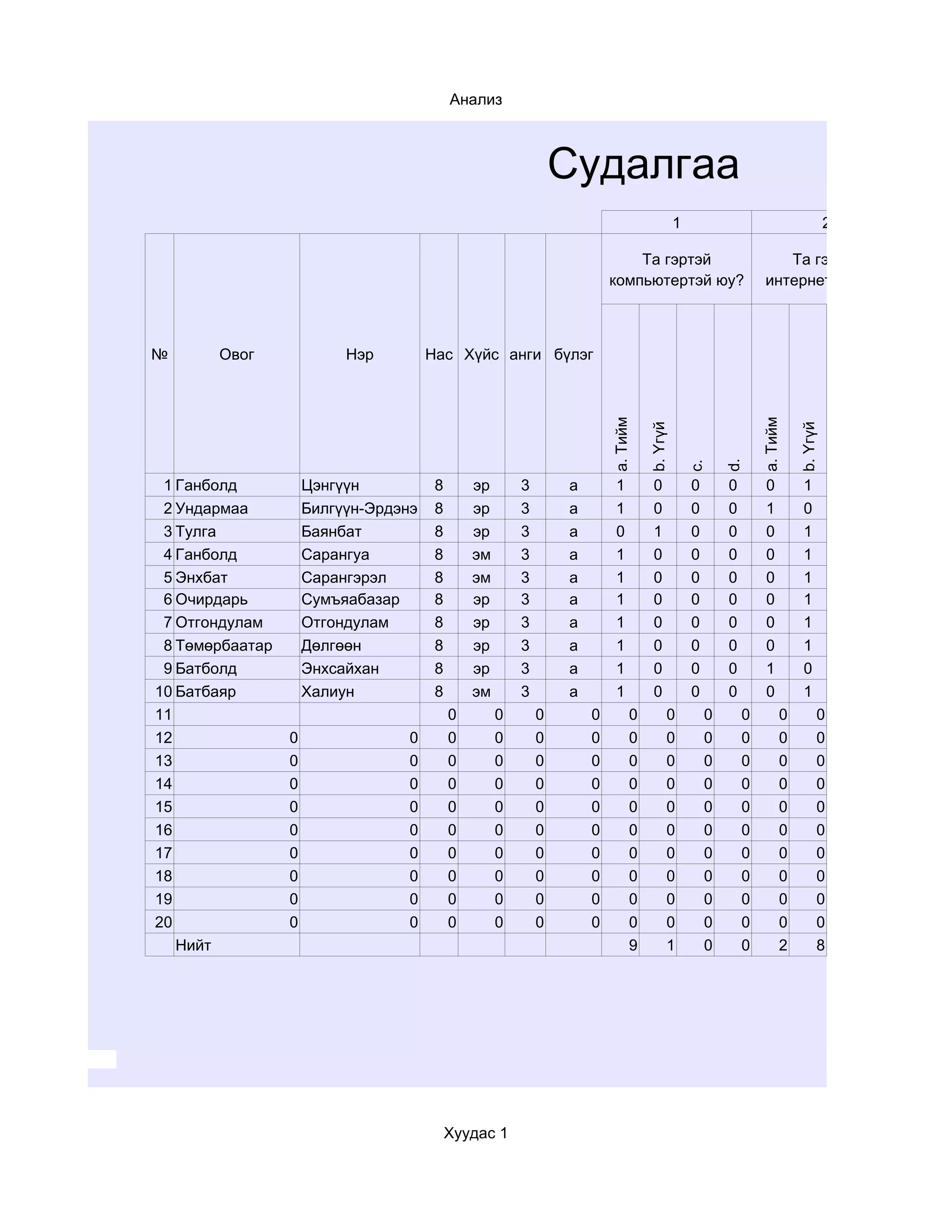 Судалгаанд оролцсон нийт a. байнга b.хаяа