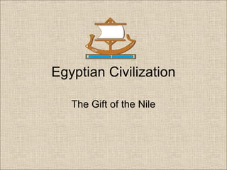The Nile River was essential to the development of ancient Egyptian civilization, providing fertile land for agriculture. Its predictable annual flooding enriched the soil and allowed Egyptians to develop permanent settlements along its banks. The river also served as the primary transportation route, connecting all parts of Egypt. Cut off from outside influences by deserts, Egyptian culture evolved uniquely with a focus on religion, the pharaoh's divine rule, and grand architecture like the pyramids and temples built from stone. While the exact methods are unknown, it is believed the pyramids were constructed using ramps and lever systems requiring a large workforce of laborers and artisans. Egyptian society was highly stratified but opportunities existed for social mobility through professions like scribe.