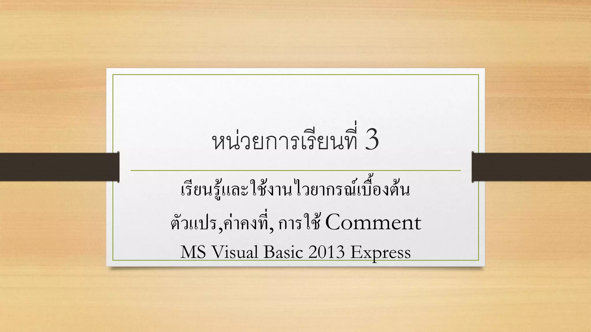 หน่วยการเรียนที่ 2 สภาพแวดล้อมของ vb 2013 express PPTX
