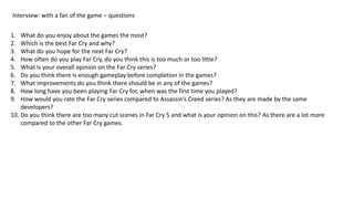 Far Cry 3 continues the popular franchise as the third game. Released in November 2012, it is set on a tropical island where the protagonist Jason Brody must save his friends who were captured by pirates and escape the dangerous island. The game was a major commercial success, selling over 10 million copies in under a year. While reviews praised the open world design and story, the multiplayer mode received criticism. Overall ratings were positive, with a 9/10 from IGN and 10/10 from Eurogamer.
