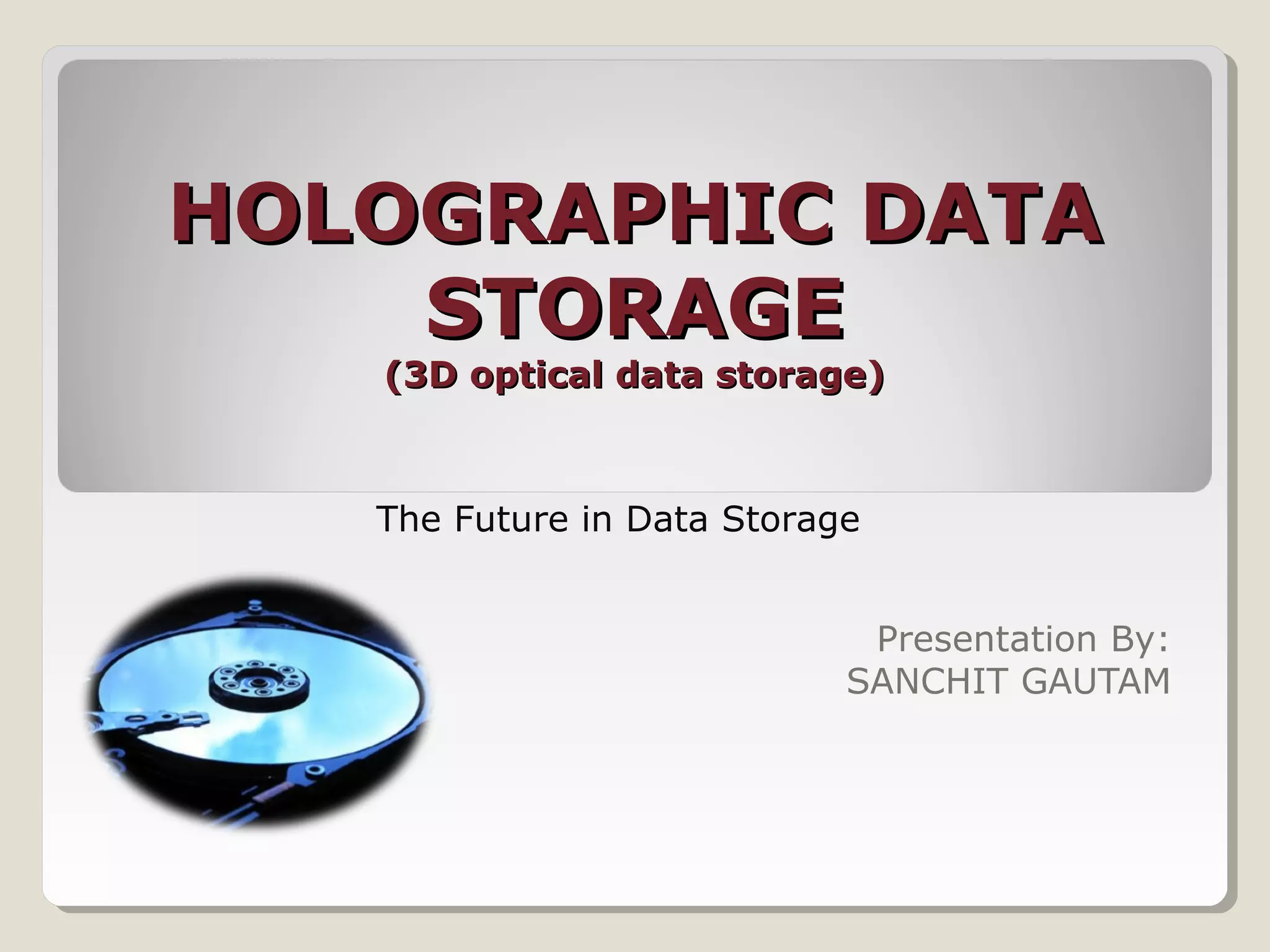 Holographic data storage uses lasers and optical materials to store massive amounts of data in three dimensions. Pieter van Heerden first proposed the idea in the 1960s, and a decade later scientists demonstrated storing 500 holograms in a lithium niobate crystal. Holographic data storage offers significant advantages over traditional storage methods by storing data in all three dimensions within a crystal, allowing millions of bits to be written or read in parallel with a single flash of light. Current research aims to develop holographic versatile disks with terabyte storage capacities and fast data transfer rates.