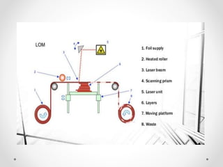 3D printing, also known as additive manufacturing, is a process that creates solid 3D objects from a digital file by building up successive layers of material. It allows for complex shapes to be produced and reduces design constraints. Common 3D printing methods include stereolithography, fused deposition modeling, selective laser sintering, and laminated object manufacturing. 3D printing offers advantages like rapid prototyping and reduced waste but also has disadvantages such as higher costs and slower production speeds. Future applications of 3D printing include use in the medical, aerospace, fashion and food industries.