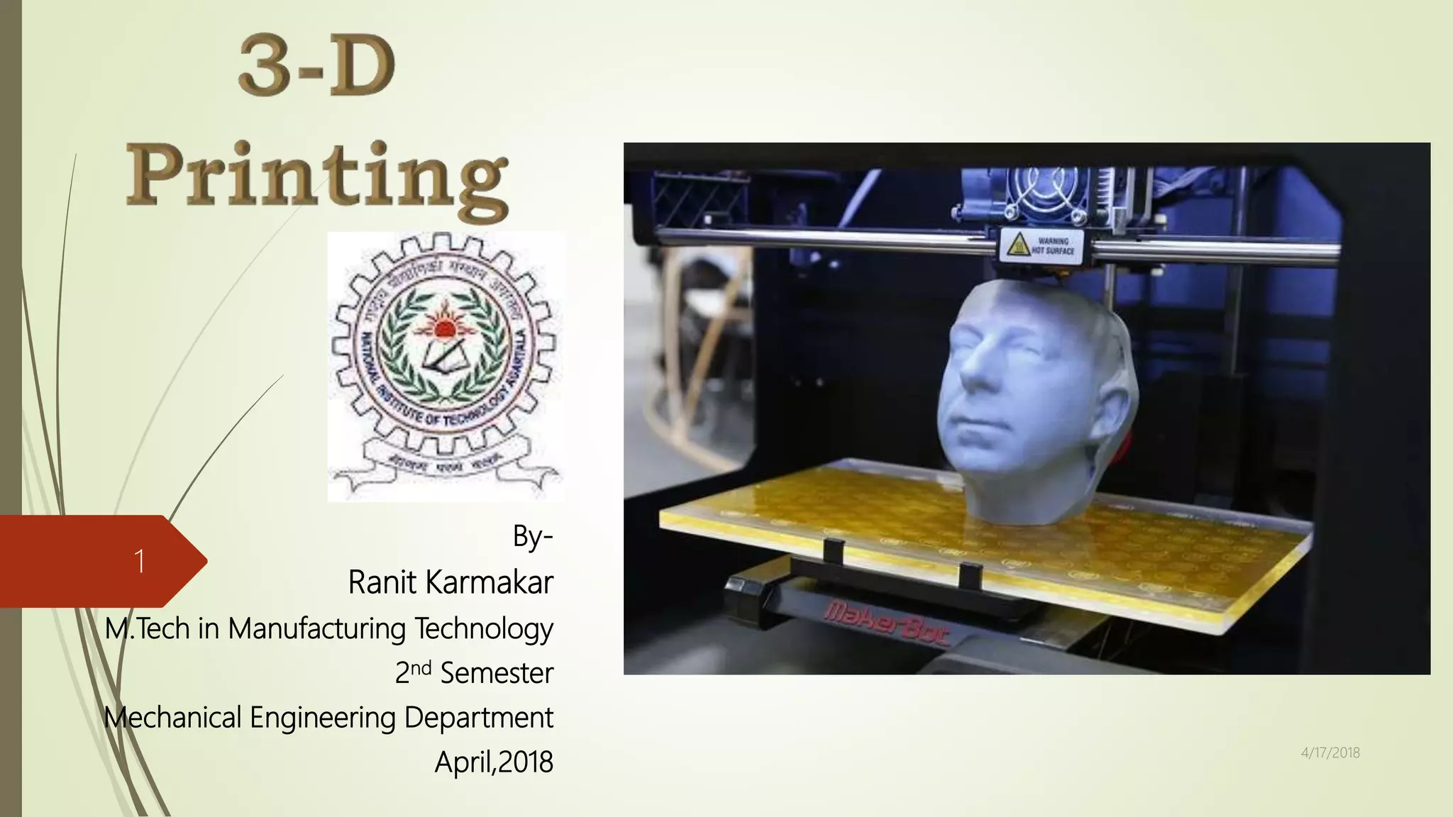 The document discusses various types of additive manufacturing (3D printing) technologies. It describes extrusion deposit techniques like fused deposition modeling (FDM), powder bed fusion methods including selective laser sintering (SLS), and vat photopolymerization techniques like stereolithography (SLA). It also covers areas like binder jetting, 3D model file formats, applications in advanced manufacturing and medicine, and challenges with additively manufacturing metal matrix composites.