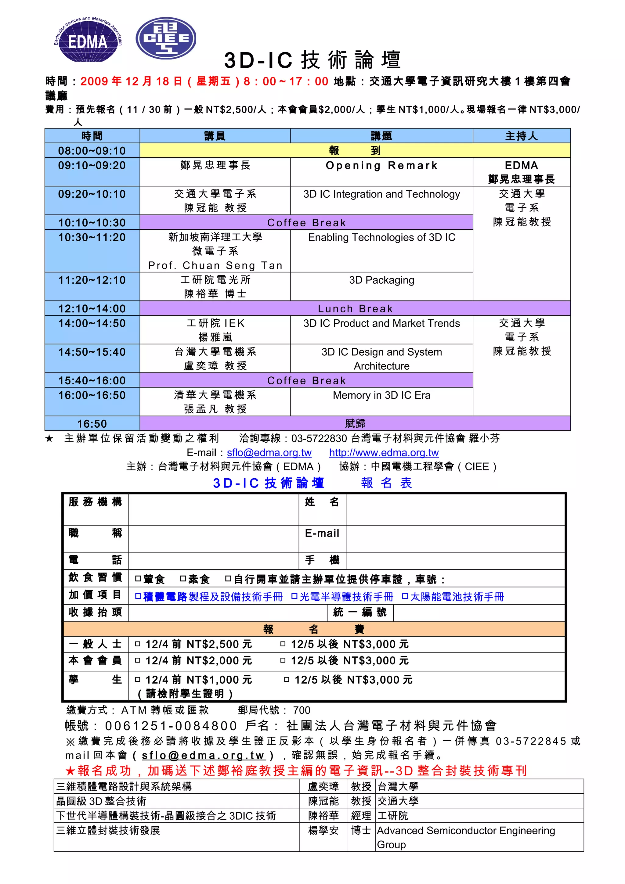 主辦:台灣電子材料與元件協會(EDMA) 協辦:中國電機工程學會(CIEE)