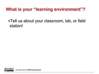 The document focuses on defining and analyzing the learning environment for non-traditional learners, emphasizing the importance of optimal, necessary, and optional elements for effective training. It suggests obtaining accurate information through interviews with subject matter experts and individuals with firsthand knowledge of training locations. Additionally, it highlights the significance of the trainer's profile in shaping the learning environment.