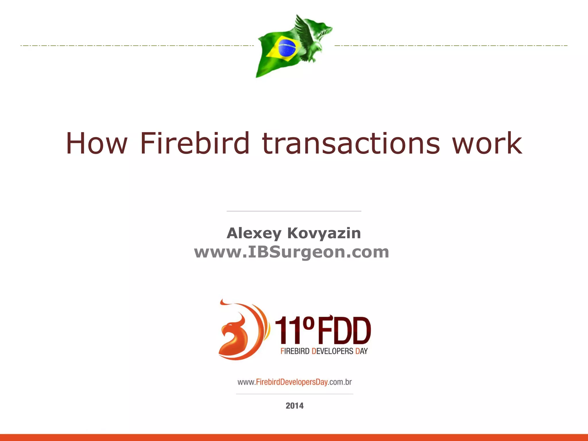 Transactions in Firebird work by assigning each record multiple versions, with each version associated with a transaction. This allows concurrent transactions to operate on stable views of the database. The transaction inventory pages (TIP) track the state of transactions and four markers - next, oldest active, oldest snapshot, oldest interesting - help determine which record versions are visible to each transaction. Keeping transactions short helps avoid problems related to these markers being out of date and prevents unnecessary record versions from building up over time.