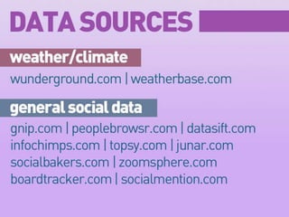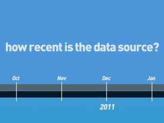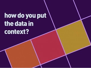 The document outlines key principles for effectively using data, including verifying sources, ensuring data is recent, and minimizing excessive information. It emphasizes structuring stories with a clear beginning, middle, and end, while distinguishing between data and design for clarity. Additionally, it provides references for infographic resources to aid in the presentation of data.