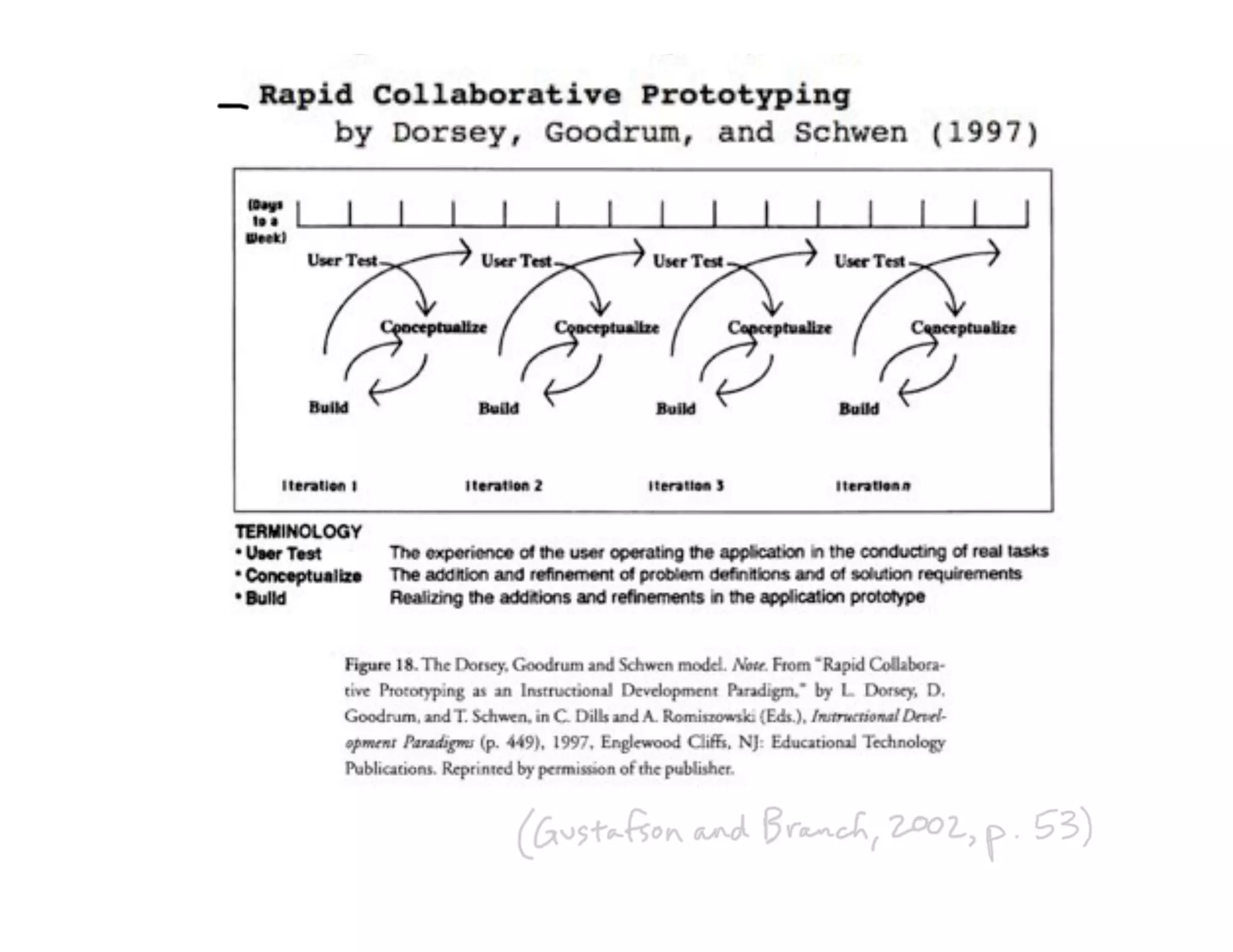 The document includes repeated references to sources regarding instructional design, particularly focusing on rapid prototyping and instructional development models. It cites works by R.E. Culatta and K.L. Gustafson alongside others, directing readers to specific URLs for further information. Overall, it serves as a resource list rather than providing detailed content.