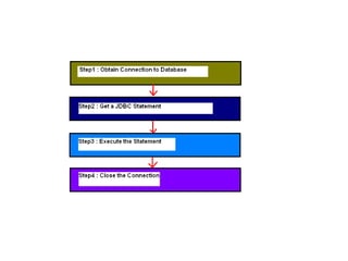 2. The basic steps involve obtaining a database connection, executing SQL statements, and processing the results.