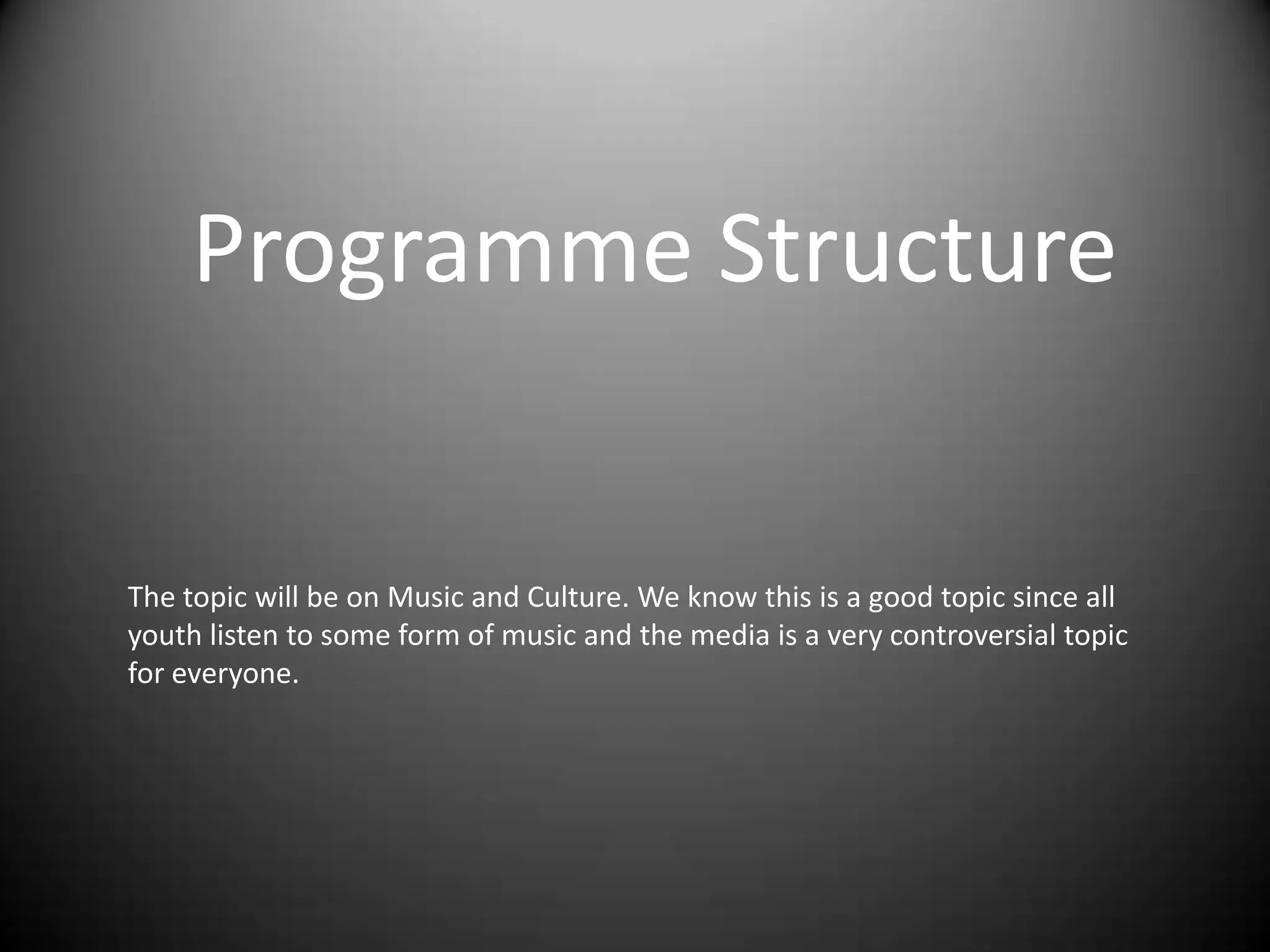 The document outlines the structure and conventions for a TV show on the topic of music and culture. It will include introductions by the presenters Tarik and Celine, an interview with guests, a discussion between the presenters, and vox pops from youth. Conventions like cutaways, astons, and mise en scene will be used. Analysis of other shows helped inform the conventions to make it professional but still appeal to a youth audience.