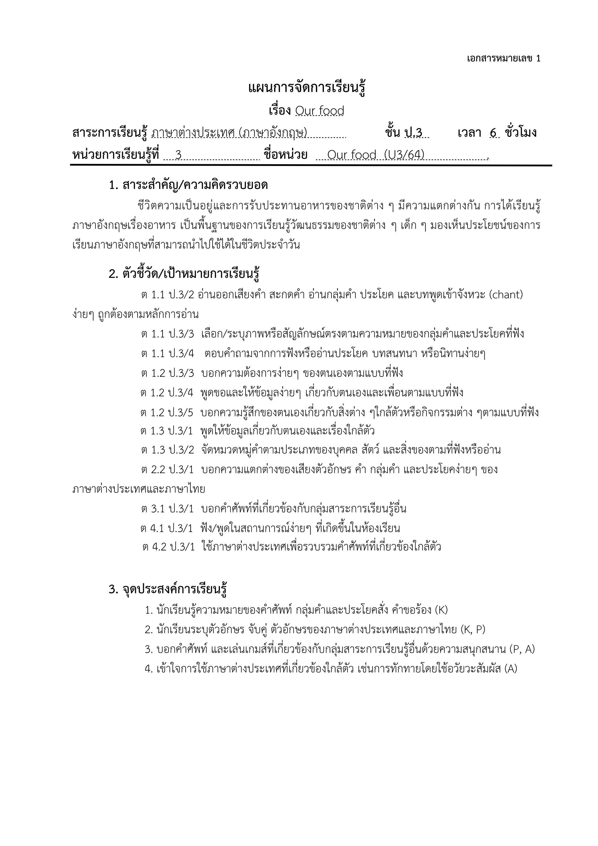 1.3 นักเรียนฟังและออกเสียงตาม