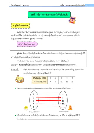วิชาคณิตศาสตร์ 2 (ค21102)บทที่ 3 | กราฟและความสัมพันธ์เชิงเส้น