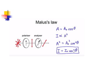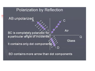 - Polarization of light from selective absorption, reflection, scattering, and double refraction.