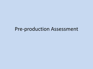 The document provides details for the pre-production of a student film project. It outlines the equipment, facilities, crew, and cast that will be used. The equipment section lists the cameras, lighting, and other gear being borrowed or used. Facilities discusses editing locations. Crew provides information on the director and cast members, including their strengths, weaknesses and availability. The document also includes poster and flyer layout plans, as well as storyboards and scripts for a trailer and interview promoting the film.