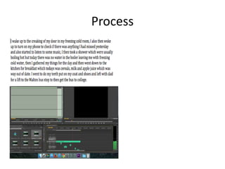 The student conducted an experiment where they first added music and sound effects without considering the subject matter. They then recorded a 30 second speaking part but when added to the project, it was only 15 seconds. This forced them to rely on the background noises to explain their morning routine. For their final product, the student plans to write a script before adding other elements to help with timing and ensure the full recording is included. They also want to check recordings more closely.