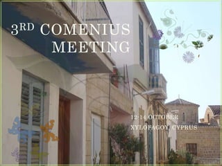 The document announces a 3rd Comenius meeting that will take place from October 12-14 in Xylofagoy, Cyprus. The meeting is part of the Comenius program and will bring together partners in Xylofagoy, Cyprus from October 12-14.