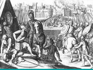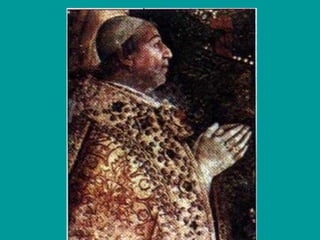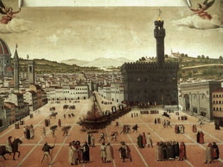 The document provides an overview of important people and events during the Italian Renaissance from 1300-1527. It summarizes the rise of Florence as the center of the Renaissance under the Medici family and their patronage of the arts. It also discusses the power struggles between foreign powers like France and Spain vying for control of the Italian peninsula, the rise and fall of various popes, and the start of the Protestant Reformation challenging the Catholic Church.