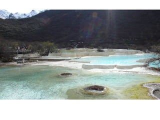 黄龙位于四川阿坝藏族羌族自治州,被誉为人间瑶池,以色彩斑斓的彩池和壮观的雪山景致闻名,1991年被列入世界自然遗产名录。都江堰是中国古代重要的水利工程,具有防洪和灌溉功能,灌溉面积达到5300多平方公里,至今仍在为当地农业发展服务。两个景点均展现了自然与人类智慧的完美结合,吸引了大量游客。