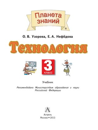 Документ представляет собой учебник для начальной школы, рекомендованный Министерством образования и науки Российской Федерации, с акцентом на технологии и работу с компьютером. В нем описаны основные техники безопасной работы с техникой, основы проектирования поделок, а также история упаковки и различные виды упаковок. Учебник включает практические задания и советы по организации рабочего процесса.