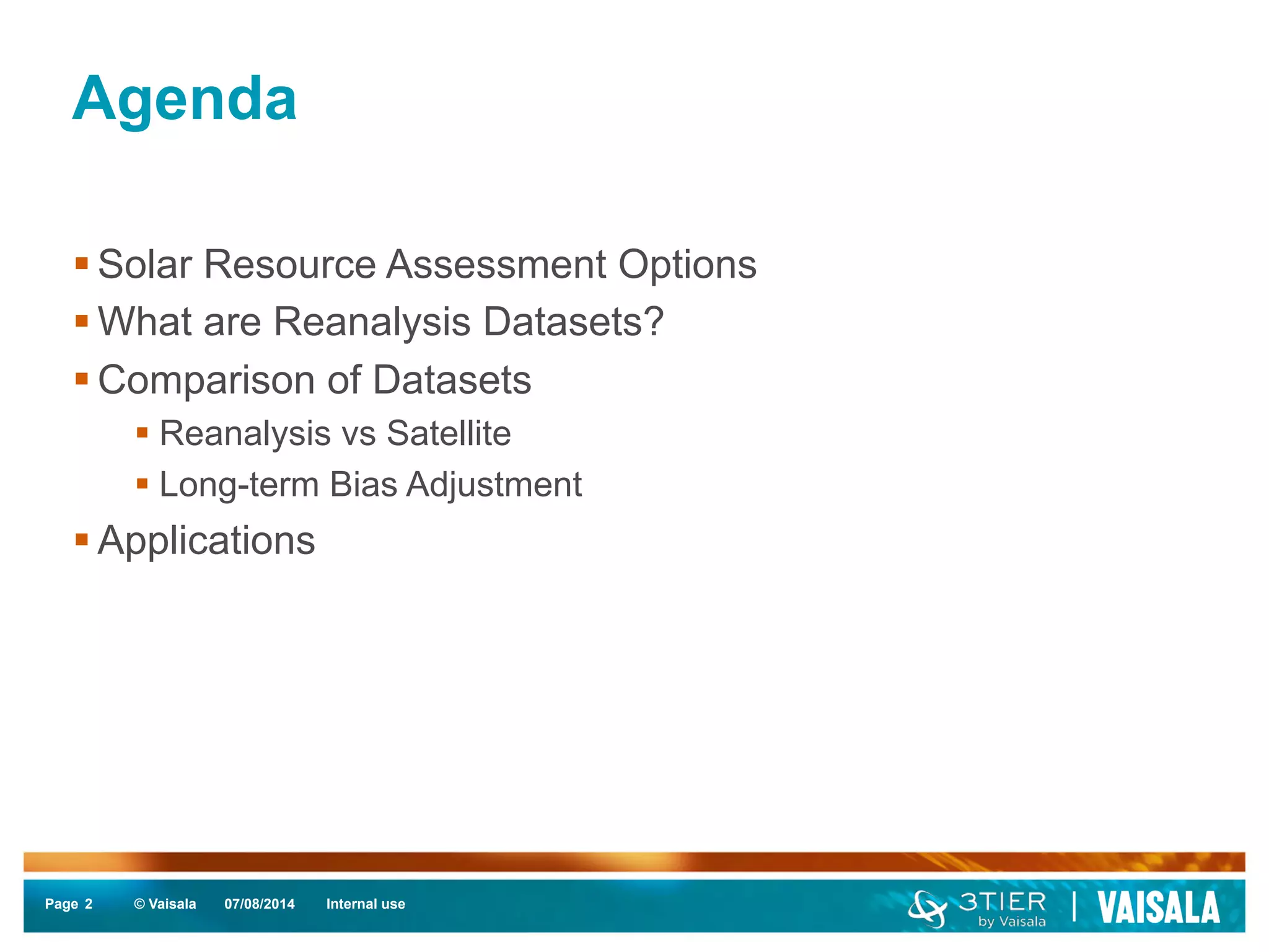 The document compares the accuracy of two second generation reanalysis datasets (MERRA and ERA-Interim) to satellite-derived solar data for solar resource assessment. It finds that MERRA has less error than ERA-Interim or satellite data alone. A bias correction method is applied to improve MERRA, reducing errors further. However, in cloudier locations, one year of training data is insufficient for the correction. While reanalysis datasets provide long-term global data, satellite observations currently provide more accurate short-term solar estimates.