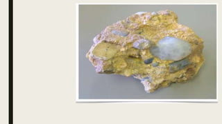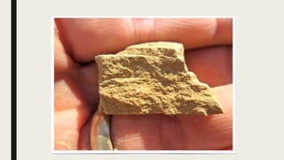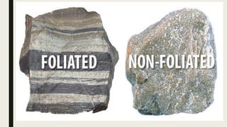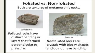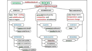 The document outlines specific learning outcomes for a lesson on rock types. At the end of the lesson, students will be able to: identify and describe the three basic rock types; describe how each rock type forms and define their environments of formation; describe how rocks are transformed through the rock cycle; and identify and describe different geologic processes in the rock cycle.