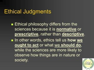 This document provides an overview of the moral theory of utilitarianism as developed by Jeremy Bentham and John Stuart Mill. It discusses key aspects of their theories, including that utilitarianism judges acts based on their consequences and producing the greatest happiness for the greatest number. It also covers criticisms of utilitarianism and Mill's adjustments to address issues like balancing quantity and quality of happiness.