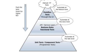 The document discusses three methods for testing ColdFusion APIs, focusing on various testing styles including unit testing, integration testing, and functional testing. It highlights tools like TestBox, Jasmine, and Mocha for effective testing in ColdFusion and JavaScript environments. The document also provides examples and best practices for incorporating testing into the development workflow.