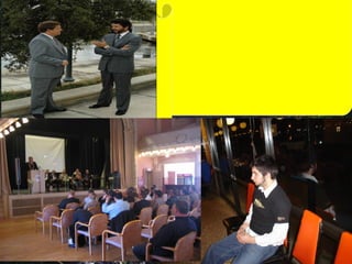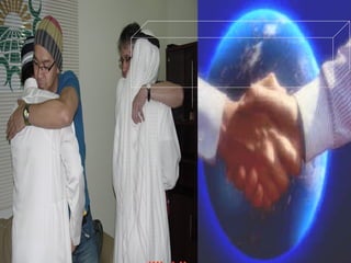 This document discusses various religious concepts and charitable works. It mentions God and different perspectives on what or who God refers to. Dates from 1415, 1995, 2001 and 2010 are listed with references to islamhouse.com. Pictures show an Italian priest helping orphans and former US President Jimmy Carter and his wife participating in charitable activities. The document promotes books by Dr. Naji Al-Arfaj and the website www.etawasol.org.