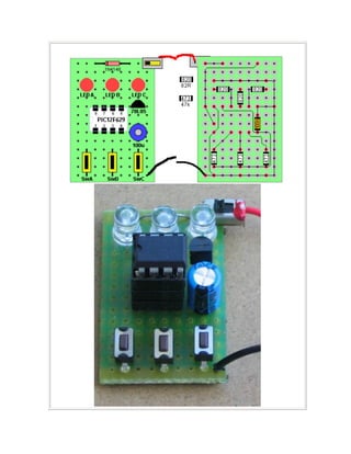 This document provides information on light emitting diodes (LEDs), including how to connect them in a circuit and drive them correctly. It discusses the characteristic voltage drop of LEDs, how to use a current limiting resistor to properly power an LED, and how to identify the cathode lead. It also covers infrared LEDs and receivers, noting that infrared LEDs emit light that is invisible, while receivers detect infrared illumination and change resistance.