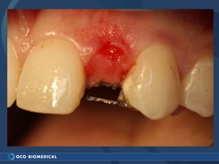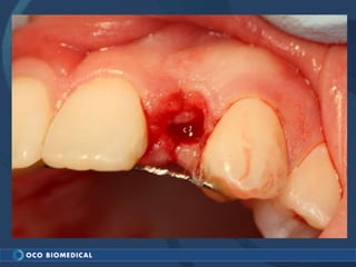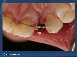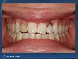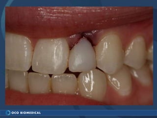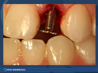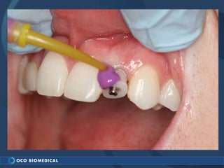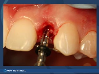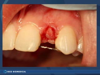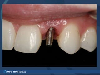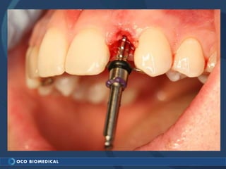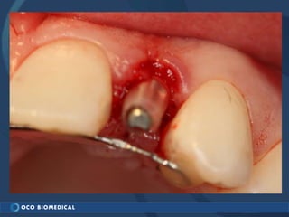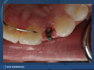 A 3.0mm dental implant was placed to replace congenitally missing maxillary lateral incisors. Dr. Tim Kosinski used a 1.8mm pilot bur and tissue punch to prepare the osteotomy site, then placed the implant by hand and seated it with a torque wrench. After ensuring the implant trajectory was within the restorative envelope, an acrylic coping was placed for temporary fabrication. At the 1 week post-op appointment, excellent soft tissue response and papilla formation were observed, and a final impression was taken to send to the lab for crown fabrication.