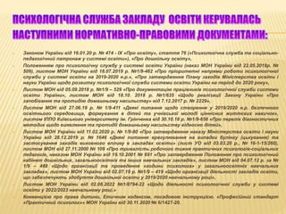 Законом Українивід 16.01.20 р. № 474 - IX «Про освіту», стаття 76 («Психологічна служба та соціально-
