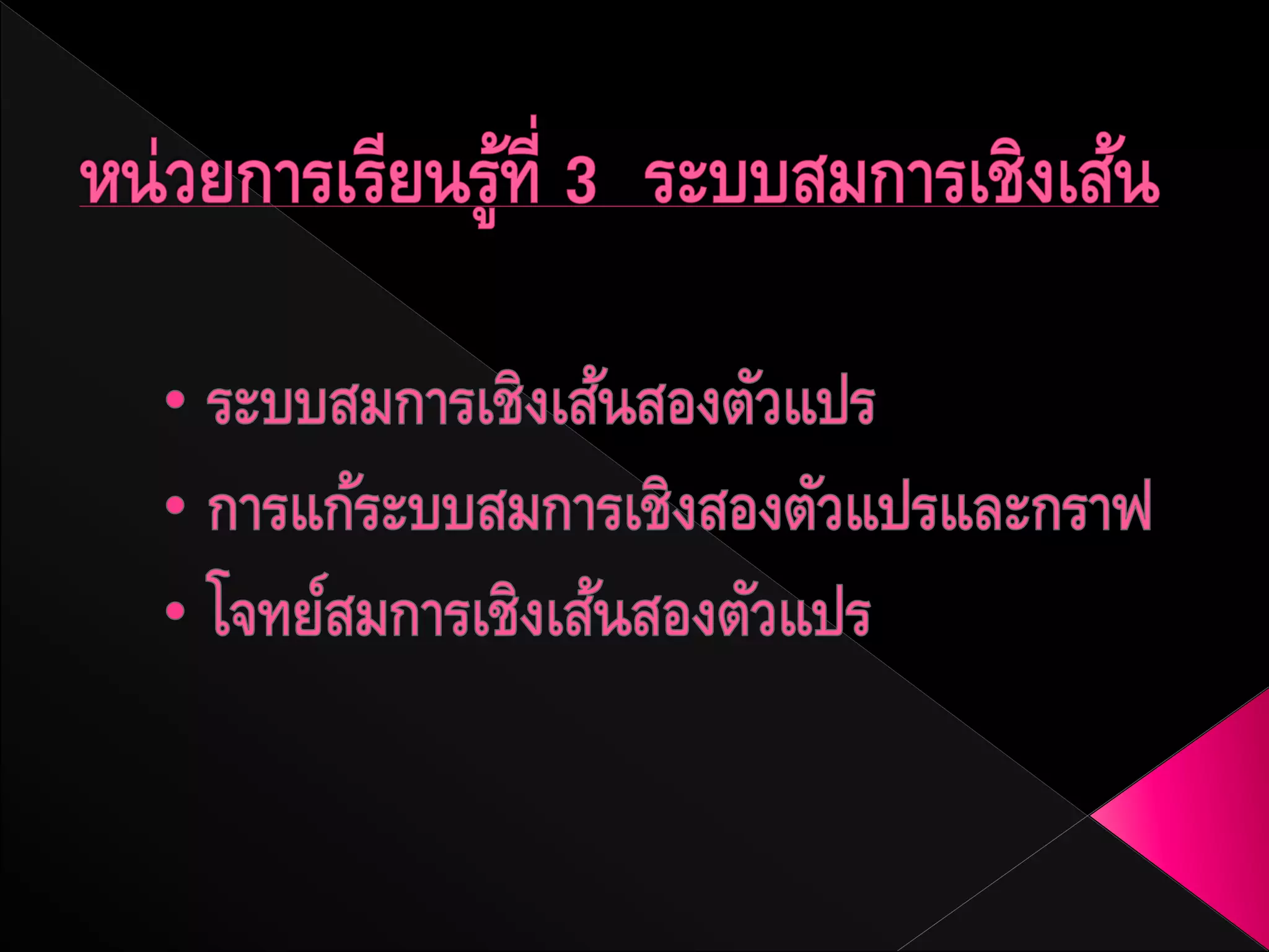 ดังนัน ระบบสมการนี้จงคาตอบพียงคาตอบเดียวคือ (2, 0)